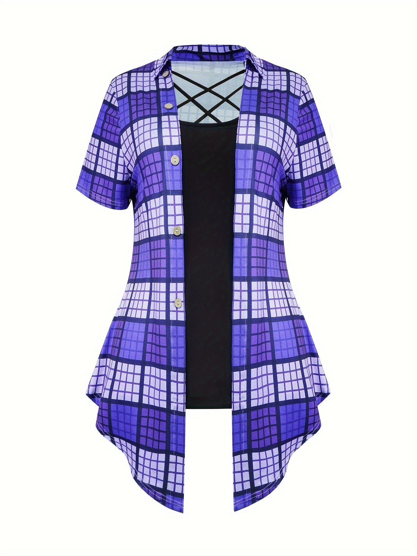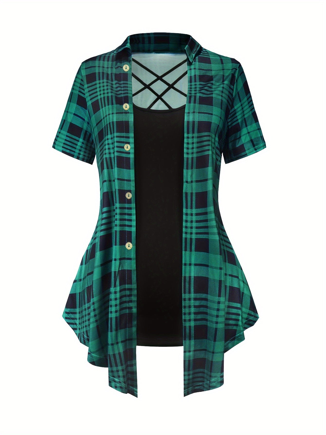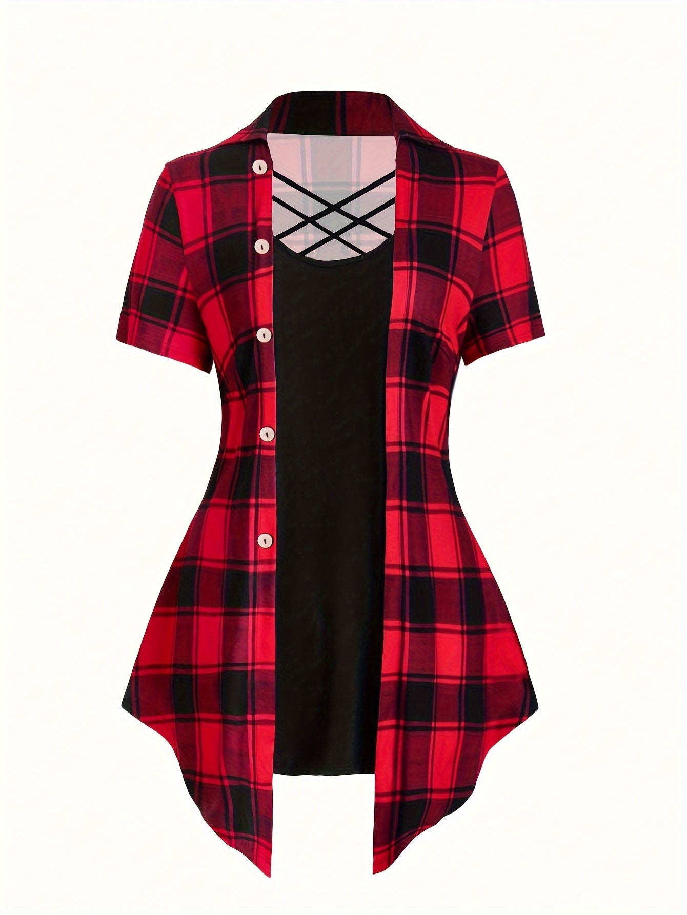 • Plaid Pattern: Adds a chic touch to the casual design.