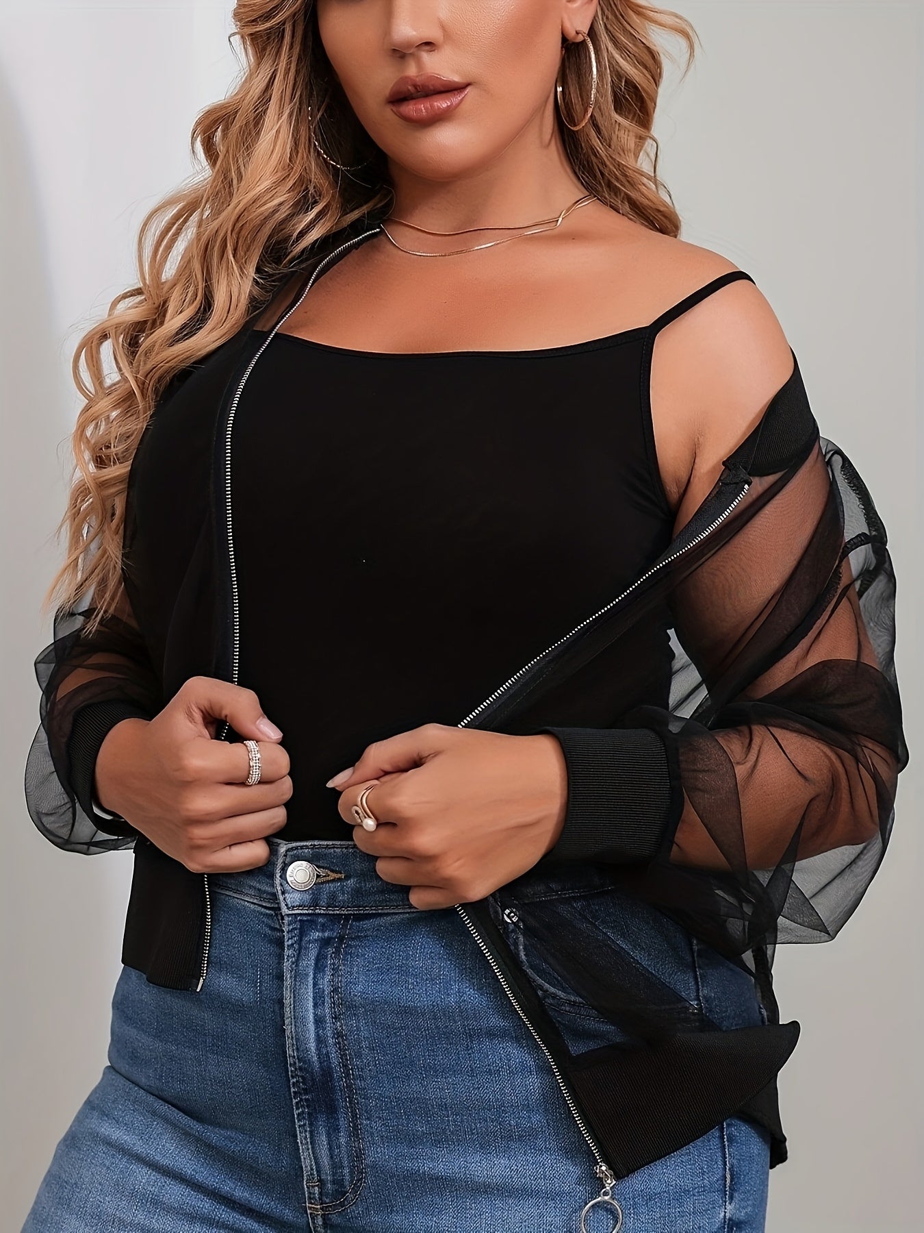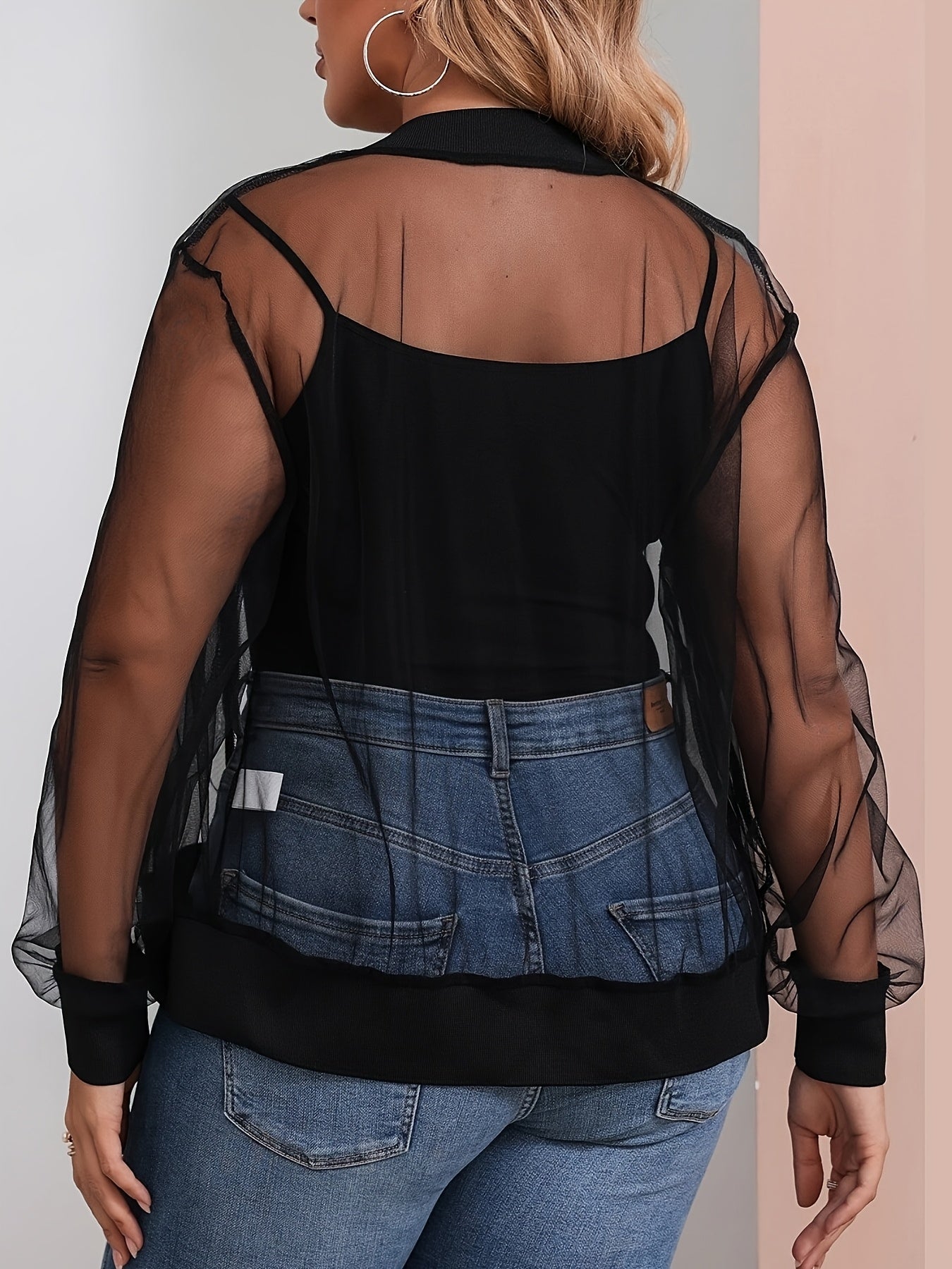 Plus Size Sheer Mesh Zip-Up Jacket - Lightweight Outerwear